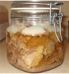 Для приготовления рецепта не требуется целый кусок мяса, потому что используются мясные обрезки с хрящами и жилками. Чем больше в них соединительной ткани, тем результат будет вкуснее. Практичным хозяйкам рекомендуется всегда держать под рукой тушенку, приготовленную заранее по известному составу, ведь это очень удобно.